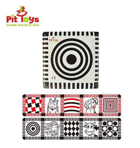 • מומלצים צעצועים בצבעים בולטים עם ניגודיות גבוהה (שחור-לבן או שחור-לבן-אדום)