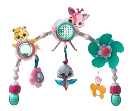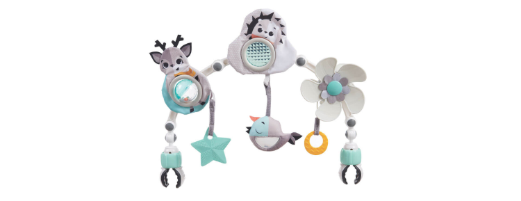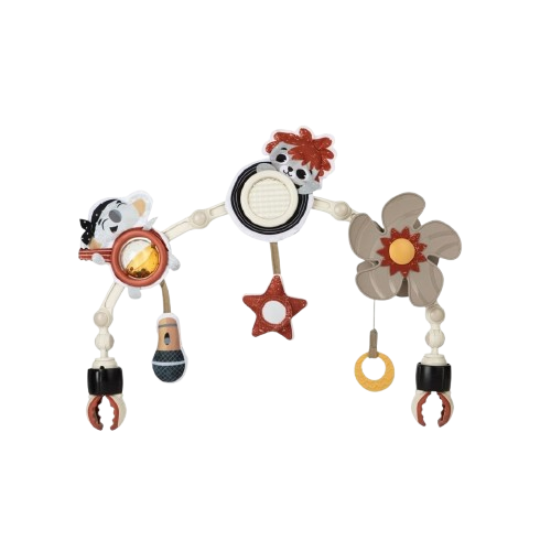 • קשתות גמישות עם צעצועים תלויים שמתחברות לצדדי העגלה