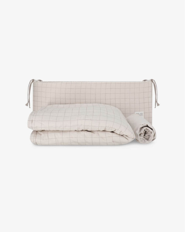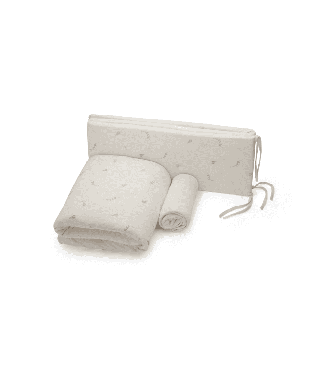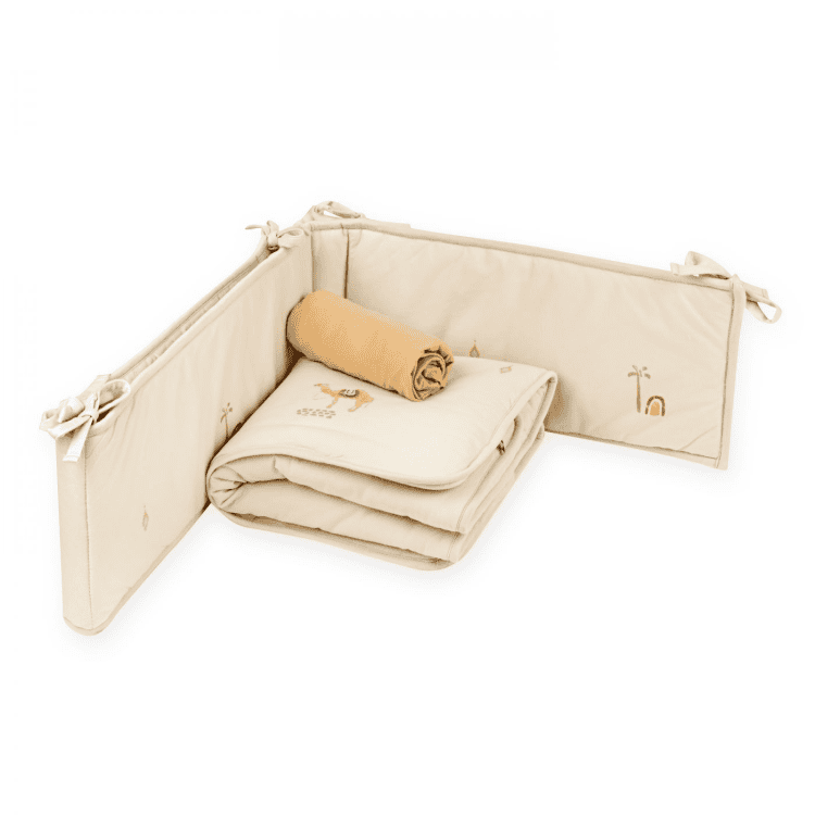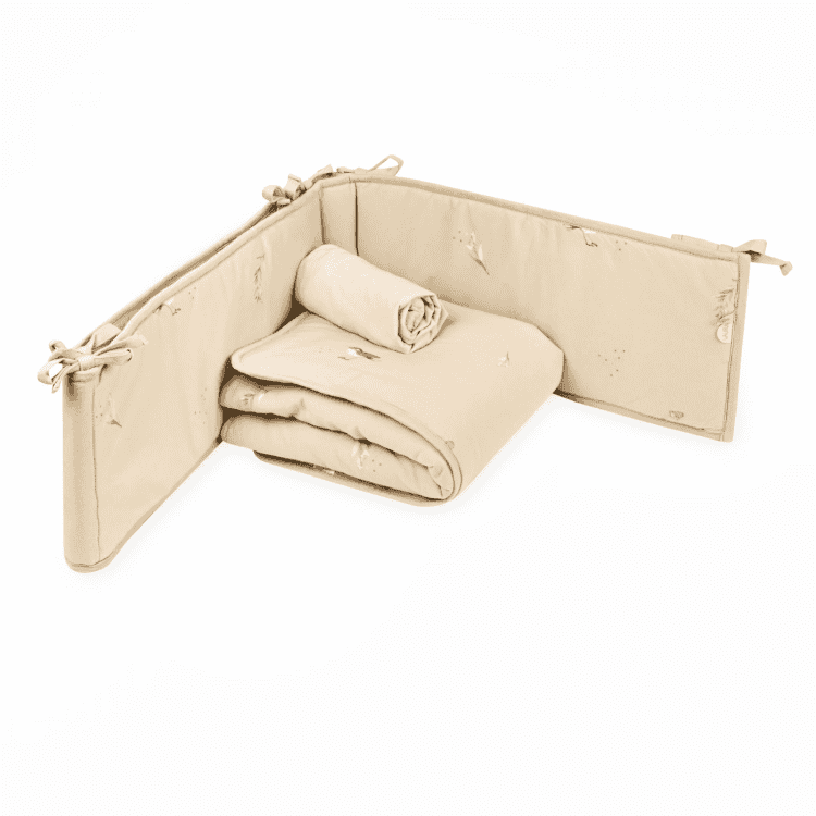 הסט כולל סדין, שמיכה ומגן ראש למיטה כדי להגן על ראשו העדין של התינוק במהלך השינה.