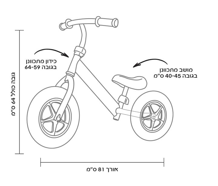 • אופני איזון מתכווננים הגדלים עם הילד שלך.