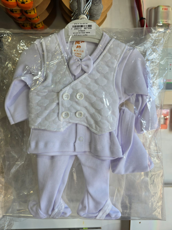 חליפה לברית במידה NB המותאמת במיוחד לתינוקות לאחר לידה ולברית.