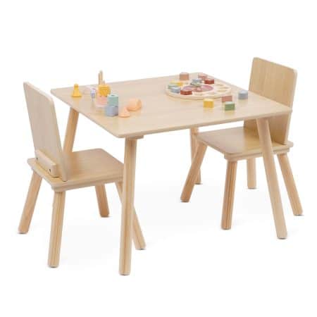 • הסט כולל שולחן פעילות ו-2 כיסאות עץ