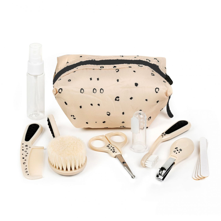 ערכת טיפוח מפנקת לבייבי עם 12 מוצרי טיפוח. הכוללים: תיק רחצה מפנק ופרקטי לנסיעות , מספריים , בקבוק ספריי , משייף , קוצץ ציפורניים , מברשת שיניים , מסרק עם שיערות רכות המותאמת לקרקפת הבייבי, מסרק נוסף וכל האביזרים שהבייבי צריך.