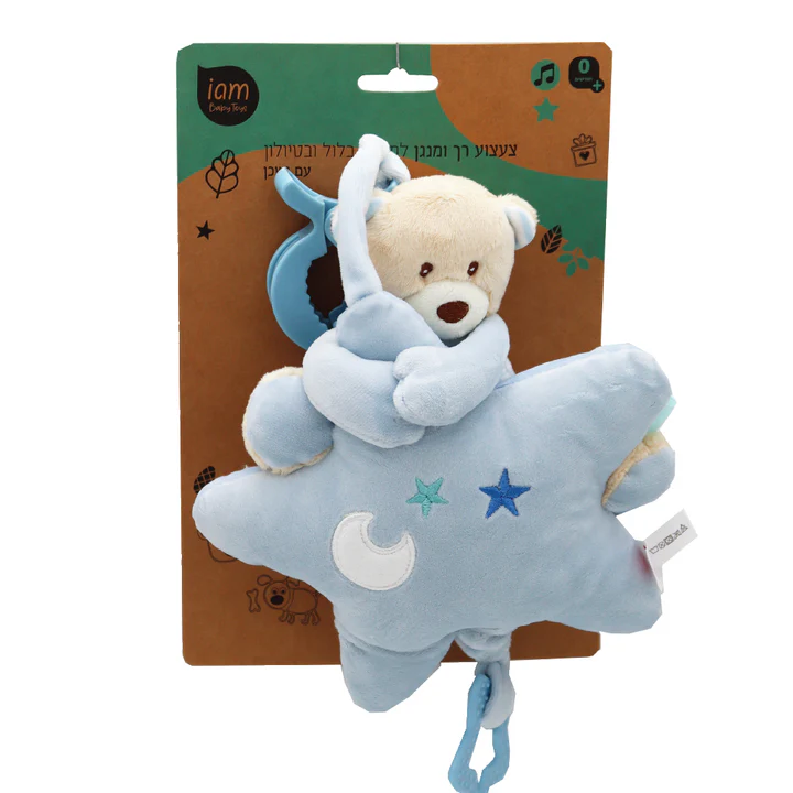 צעצוע מנגן לעגלה מבד רך ונעים למגע התינוק, בצורת כוכב.