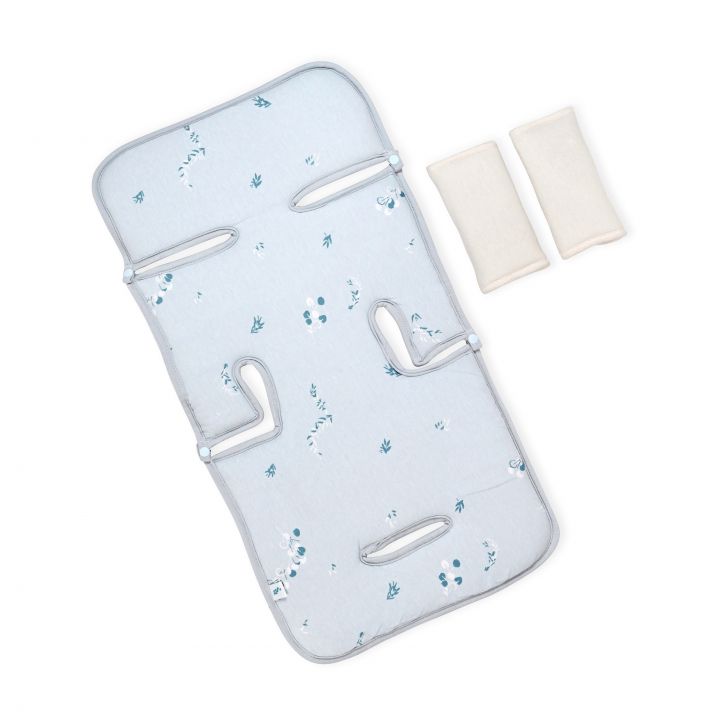 ריפודית לעגלה וזוג חבקים תואמים עשויה מבד טריקו 100% כותנה רכה.