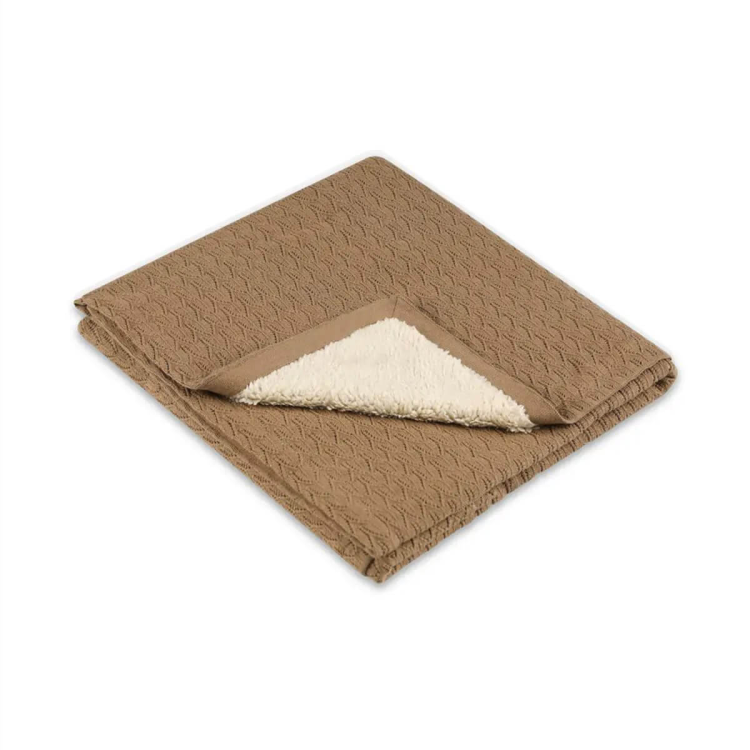 שמיכת סריג בדוגמת מעויינים בחלק החיצוני ופרווה מחממת ונעימה במיוחד בצידה הפנימי. מושלם למתנת לידה. הרכב בד: 97% כותנה 3% לורקס ,ביטנה: 100% פוליאסטר. גודל השמיכה: 75*100. הוראות כביסה: בהתאם לתווית.