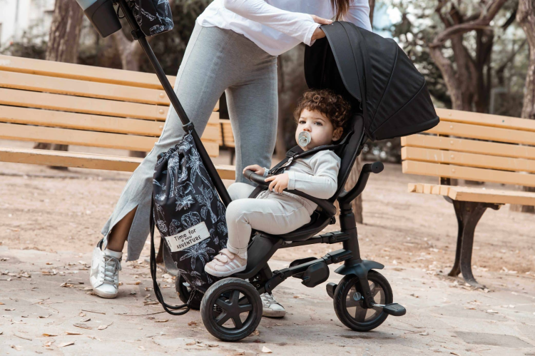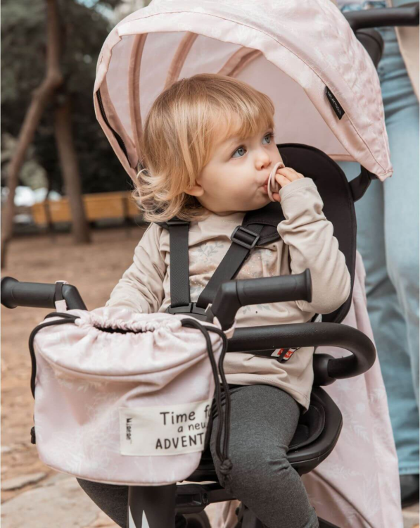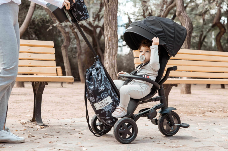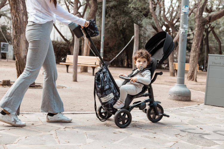 התלת אופן מיננה מגיע עם זוג תיקי אחסון וגגון בהדפסי הקיץ החדשים שלנו, הוא מותאם במיוחד עבור טיול מושלם בחוץ. מאפשר 6 מצבי שימוש שונים המתאימים לשלבי התפתחות הילד ומאפשרים – דחיפה על ידי ההורה, רכיבה עצמאית וקיפול מלא ונוח לאחסון. ישנה מערכת קיפול בלחיצת כפתור אחת המקלה על הנשיאה והאחסון. מגיע עם ידית דחיפה טלסקופית מתקפלת, גגון מעוצב, להגנה מקרינת UV, דוושות מונעות החלקה. מדרך רגליים מתקפל לילד, תומך רגליים ניתק לפעוטות. גלגלי EVA איכותיים, בלמי רגל אחוריים, שלדת אלומיניום חזקה וקלה. מושב דו-כיווני, המאפשר ישיבה עם/נגד כיוון הנסיעה. משענת גב גבוהה, נוחה ומתכווננת, וכרית מושב מאווררת. מערכת ישיבה בטוחה, הכוללת חגורת בטיחות מלאה 5 נקודות. מנגנון המאפשר שליטה בהיגוי על ידי ההורים או על ידי הילד. מנגנון הפעלה/ביטול פעולת הדוושות. תיק אחסון אחורי מעוצב, מתנתק בקלות ומתאים לנשיאה על הגב, בנוסף ארגונית מעוצבת לחפצי ההורה/הילד, עם מקום ייעודי לבקבוק, מתקן לכוס שתייה על ידית הדחיפה.