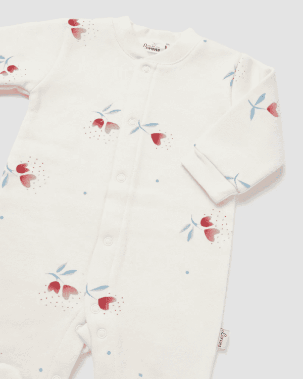 אוברול מבד פוטר מחמם לימים קרירים במיוחד עם הדפס/כיתוב רגל סגור.