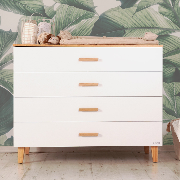 • שידת ראנצ׳ – לשידת ראנצ’ ארבע מגירות ולכל מגירת ידית מעץ. למגירה העליונה חלוקה פנימית, המגירה מחולקת לשלושה חלקים וע”י כך מציעה ניצול מקסימלי, שימוש אופטימלי ונגישות מלאה לכל פריט (מומלץ לאחסן במגירה זו את הפריטים שבהם נעשה שימוש רב יותר כמו: חיתולים, מגבונים, מוצצים, בגדים וכו).