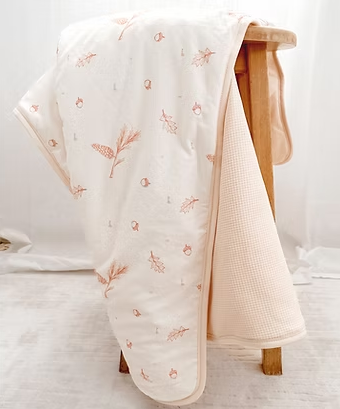 סט מצעים מפנק למיטת תינוק, עשוי מבדי וופל ("מיני פיקה") 100% כותנה סרוקה נעימים למגע, מעוטר בהדפסות עדינות ונעימות לעין.