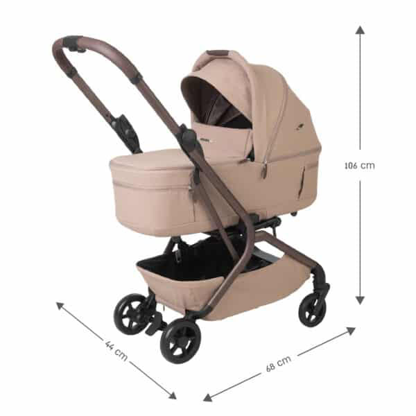 • עגלה קומפקטית עם סל שכיבה שמתקפל לשימוש קל ונוח ברכב או ברכבת או במטוס.