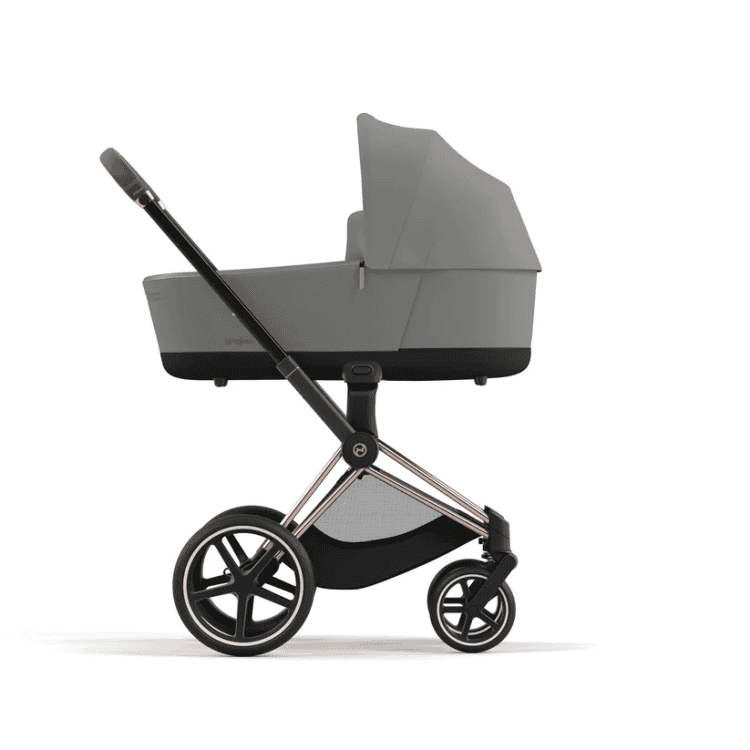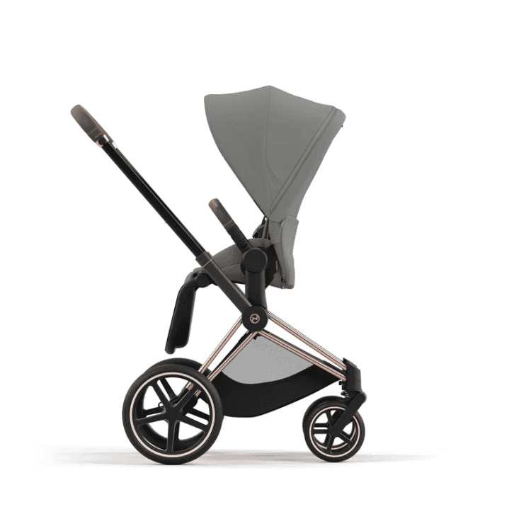 עגלת תינוק פריאם 4 בצבע אפור עם שלד רוז גולד, הינה עגלת תינוק משולבת טיולון חדשנית ויוקרתית.