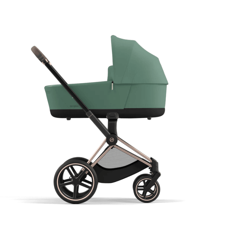 עגלת תינוק פריאם 4 בצבע ירוק עם שלד רוז גולד, הינה עגלת תינוק משולבת טיולון חדשנית ויוקרתית.