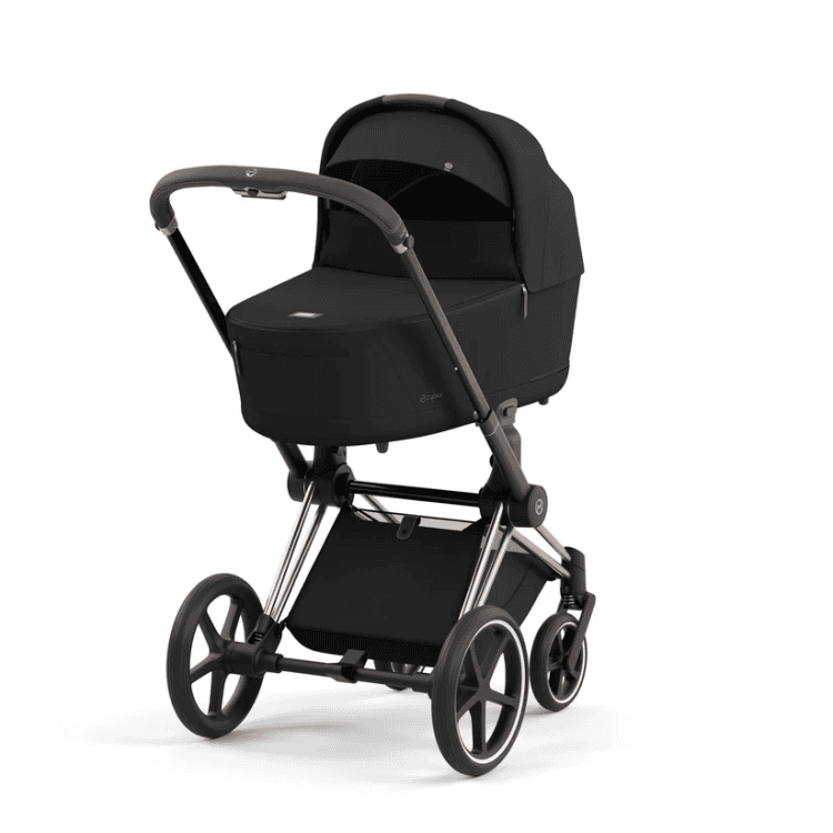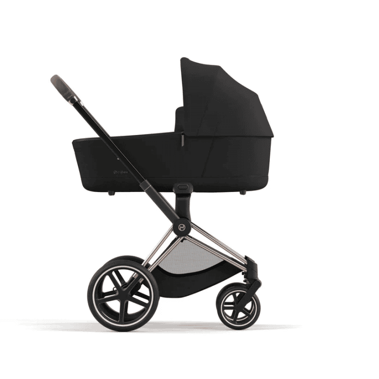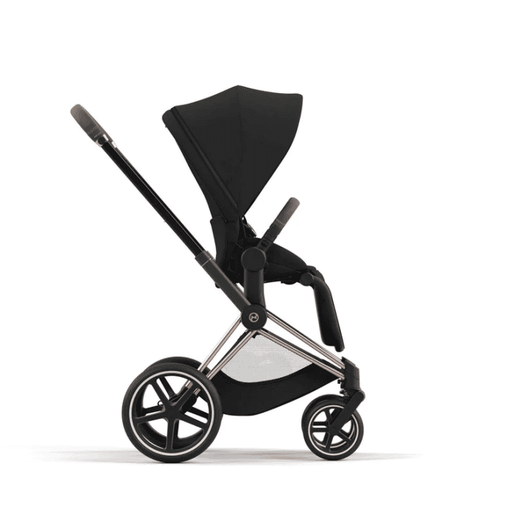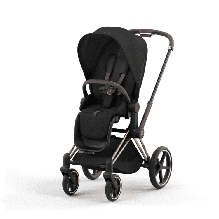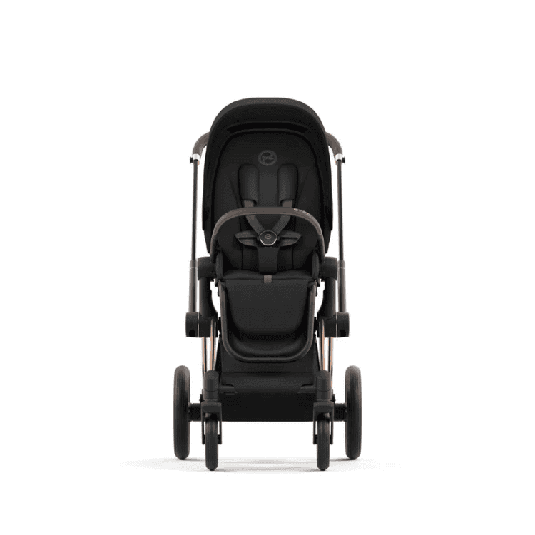 עגלת תינוק פריאם 4 בצבע שחור עם שלד רוז גולד, הינה עגלת תינוק משולבת טיולון חדשנית ויוקרתית.