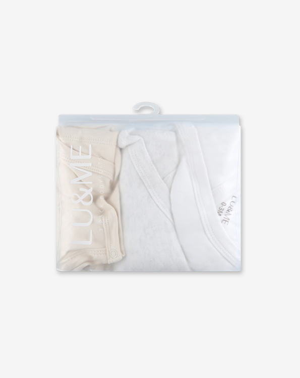 שלישיית בגדי גוף מעטפת NB בז' – LU&ME