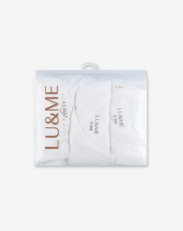 שלישיית בגדי גוף מעטפת NB צבע לבן – LU&ME
