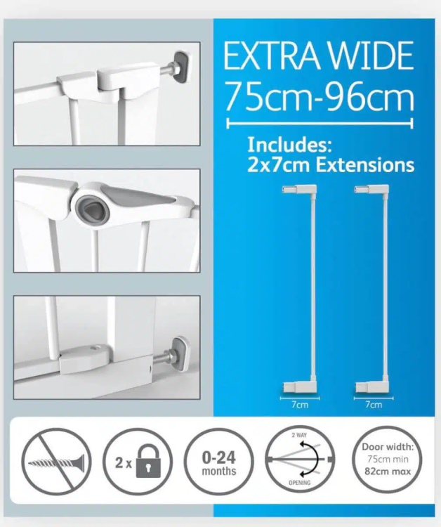 שער לחץ עם פס תחתון שטוח כולל 2 מאריכים 75-96 ס"מ לבן – במבינו