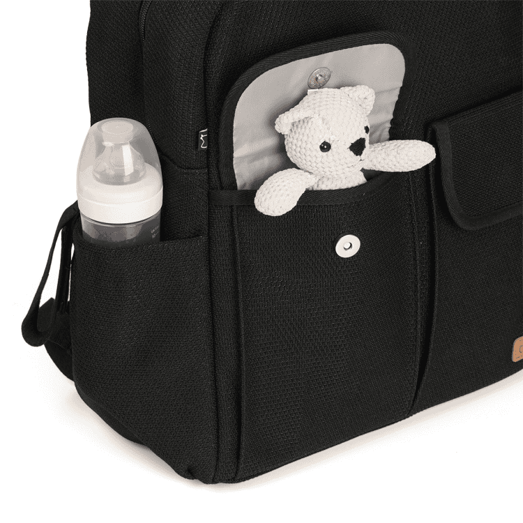 • ארגון חכם וקיבולת גדולה – כולל תאים קדמיים, פנימיים וצדדיים לאחסון פריטים חיוניים לתינוק – בקבוקים, בגדים להחלפה, חיתולים, מגבונים, צעצועים, מוצצים ועוד. הסידור הפנימי וחלוקת התאים החכמה מאפשרים למצוא כל פריט במהירות ובקלות.