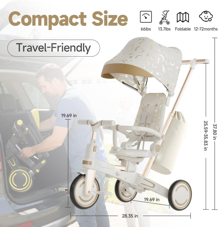 תלת אופן דו כיווני 5 ב1 מתקפל בז' – B SMART